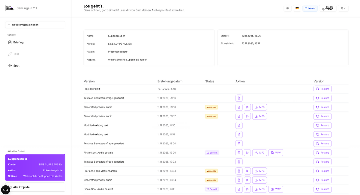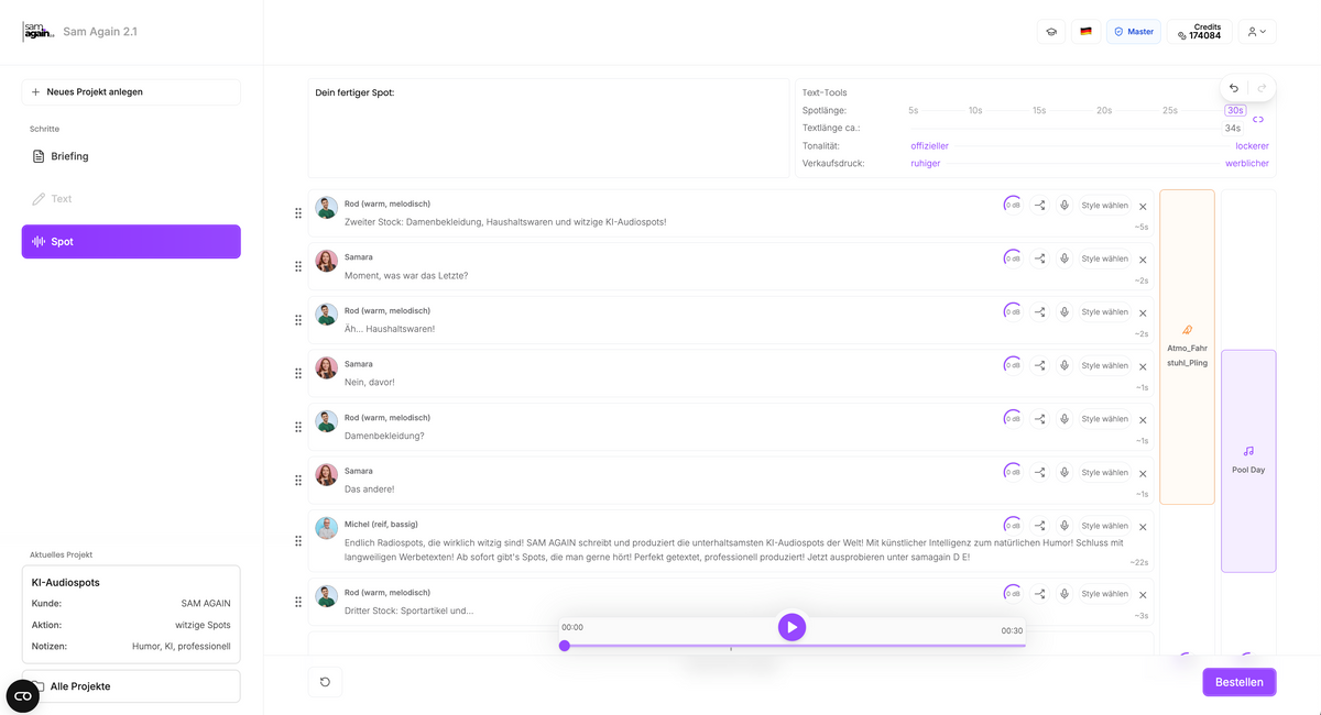 SAM AGAIN - KI AUDIOSPOTS ONLINE ERSTELLEN